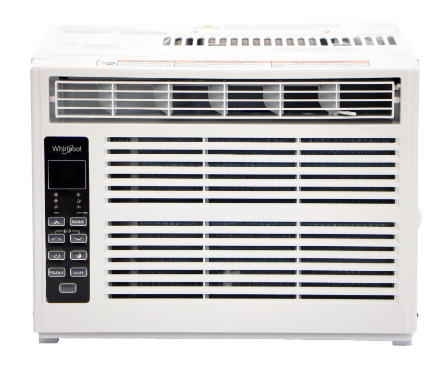Enter the realm of cool comfort! Easy to install and operate, the Whirlpool 8,000 BTU window-mounted air conditioner quickly cools and dehumidifies a room up to 350 square feet. Equipped with a programmable 24-hour on/off timer, you can customize cooling time to fit your schedule for immediate comfort when you get home. Three cooling speeds, Eco mode, and Sleep mode all give you the flexibility you need to keep you and your loved ones cool and comfortable. Plus, maintenance is a breeze with the removable and washable air filter. At Whirlpool, we take comfort and caring to the next level. Energy Star compliant: 12.1 EER 8,000 BTU air conditioner for window-mounted installation 5.9-ft. LCDI power cord with 3-prong grounded plug uses 115V electrical outlet Cools a room up to 350 sq. ft. with up to 1.8 pints per hour dehumidification On-board electronic control panel with digital display Remote control with LCD display allows you to control the unit from across the room 3 cooling speeds plus Auto option for cooling flexibility Eco mode uses less energy for savings on your utility bill Sleep mode gradually increases room temperature after being activated Programmable 24-hour on/off timer cools on your schedule After a power failure, unit automatically restarts when power is restored 8-way directional air louvers directs the air where you need it Removable and washable air filter with a 'clean filter' alert for convenient maintenance Easy-to-install window mounting kit included Window width: 23" min / 36" max Minimum window height: 14.5" U.L. listedRead More