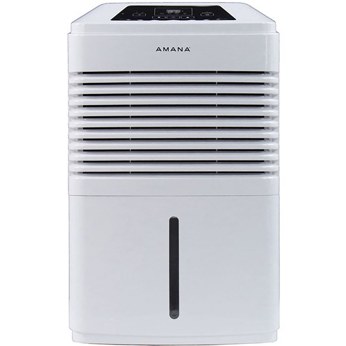 Removes 48 pints of moisture per day: The Amana 48-pint portable room dehumidifier gets rid of condensation by removing up to 48 pints of moisture from the air per day. With a removeable, washable dust filter for easy maintenance, you’ll ensure that you’re always getting the most out of your unit. Adjust to your own comfort level: As the perfect solution to clammy indoor environments, the adjustable humidistat allows you to customize your space to remove dampness and experience maximum comfort. Equipped with touch controls, an LED display, 2 fan speeds, and a 24-hour on/off timer, the Amana 35-pint dehumidifier features a variety of settings for your own customization. Ideal for any indoor space: With minimal noise, the machine works quietly to remove moisture from any room in your home or office without disruption to your daily life. Perfect for your basement, bathroom, apartment, office, bedroom, attic, laundry room, and more, the 4 easy-rolling caster wheels and integrated side handles allow you to easily transport the dehumidifier to any space, providing relief when and where you need it most. The unit is designed with a 4.5-ft. power cord and uses a standard 115V electrical outlet, so you can transport the unit to various spaces as the seasons change. Convenient and simple to use: Along with top-of-the-line performance, Amana makes convenience a priority to proactively prevent excess moisture in your home. The unique auto-restart function saves your settings during a power outage, and the automatic defrost function melts away any ice on frozen coils. And featuring an automatic shutoff indicator, the unit alerts you when it’s time to empty. Modern, sleek design: With a modern exterior and a quiet fan, the Amana 48-pint is designed to be a sleek addition to your home, without grabbing too much attention.Read More