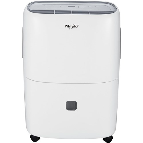 The Whirlpool 50-pint dehumidifier removes up to 50 pints of moisture from the air per day, working quickly to absorb moisture from a 4,500 square foot space. By removing household odors and excess moisture, the unit creates a safe environment, especially for those sensitive to damp air. The Whirlpool 50-pint can be placed in various locations throughout your home or apartment, including attics, bathrooms, bedrooms, garages, and more. Equipped with an LED humidistat display and 2 different fan speeds, you’ll enjoy air quality customized to your preferences. For households with children, enjoy a child lock function to prevent changed settings. For use in extreme conditions, a continuous drain option is available using a low-level drain and a standard garden hose. No emptying required! And following a power outage, enjoy the Loss of Power Protection, which remembers all settings when power is interrupted. Equipped with durable, rolling casters and integrated side handles for easy movement and carrying, you'll have no trouble transporting your unit around your home as needed. Following your purchase of the Whirlpool 50-pint dehumidifier, you'll receive a 1-year warranty to ensure the best possible experience with your technology.Read More